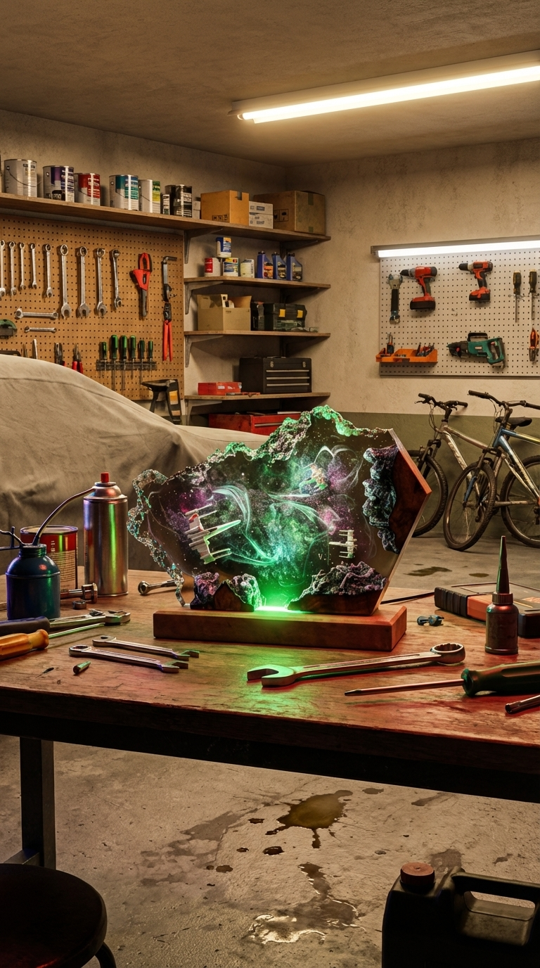 Every piece is built layer by layer. The resin is carefully mixed, tinted, and poured to create swirling nebulas, glowing atmospheres, and deep space effects that look different from every angle. The live-edge wood isn't cut into shape — it's chosen for its natural grain and curves, so every single lamp has a one-of-a-kind silhouette that will never be duplicated.
